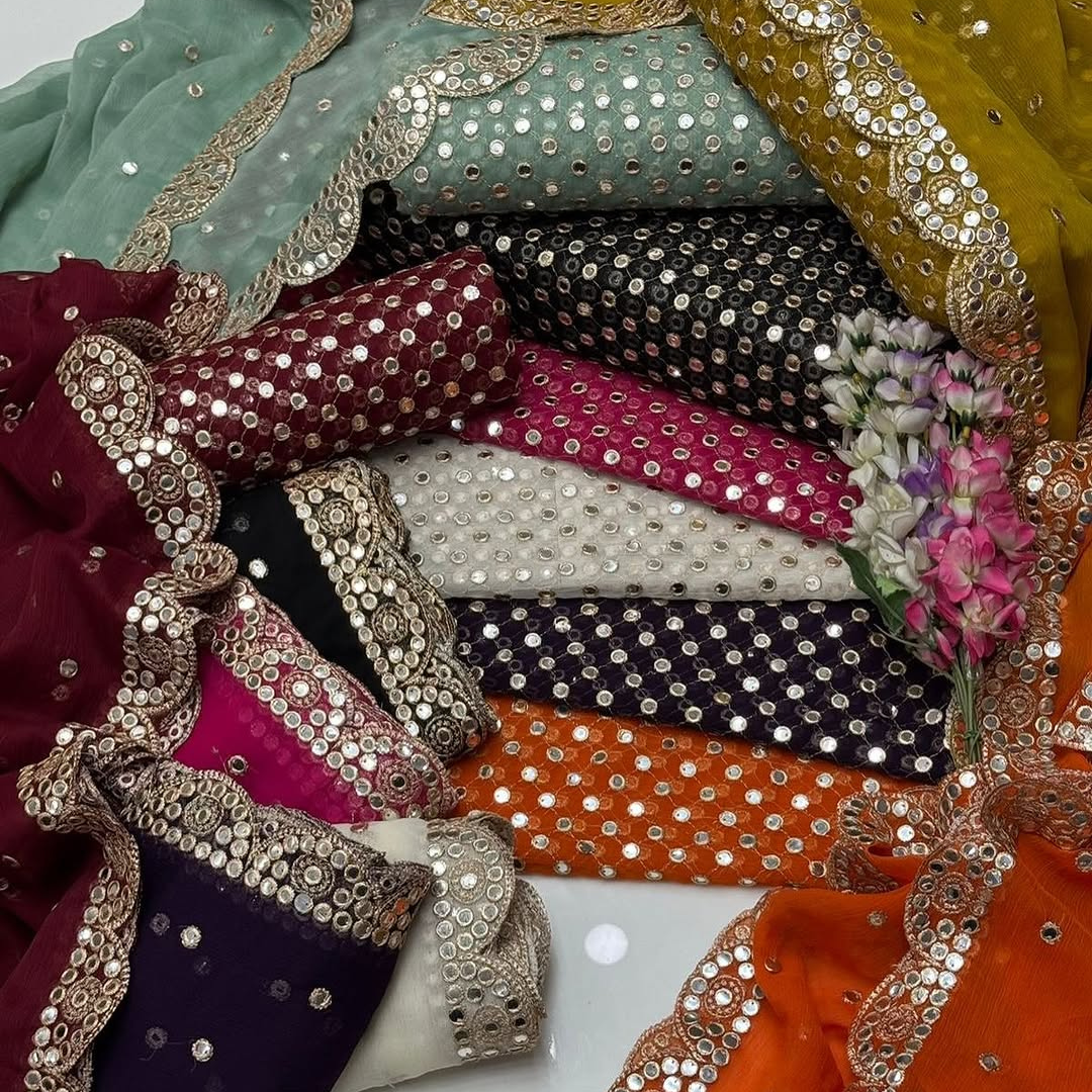 The Gotta Patti Fabric is a beautifully crafted material made with precision using machine embroidery. Available in a wide variety of vibrant colors, this versatile fabric allows you to create countless stylish outfits. From Instagram-worthy designs to traditional ensembles, the possibilities are endless.